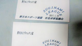 新日本スポーツ連盟主催、2016年度後期東京卓球リーグ戦が開催されました。荻体クラブの結果は以下の通りとなります。(内容:3単2複、4~5チームの総当たりリーグ戦)「男子」~4部~日時:2月19日(日)<会場:東京体育館>A:杉山久明、久島...